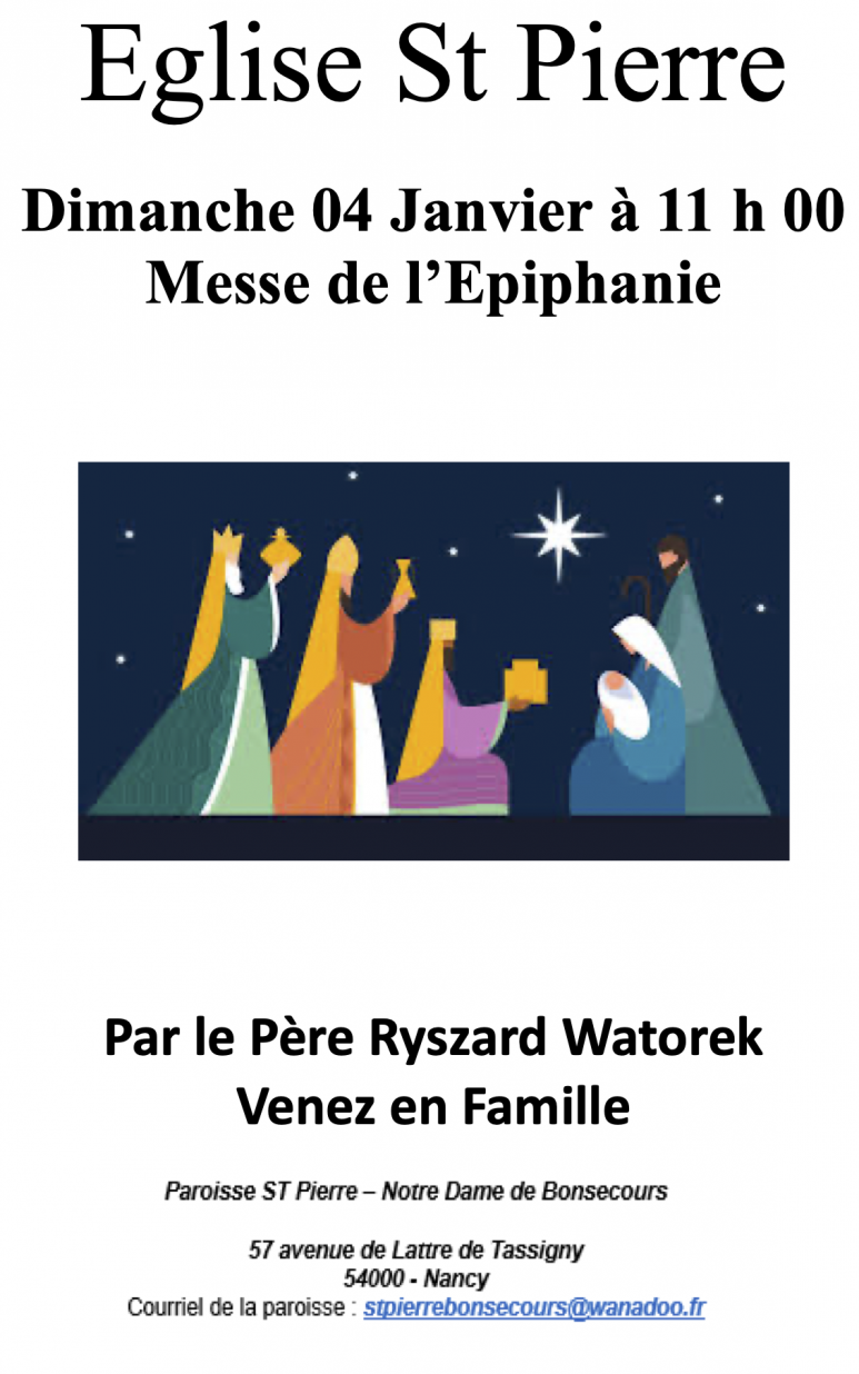 12h55 25 déc. 2025 Fête de l'Epiphanie Tweet Lien permanent Catégories : Horaires de messes et Annonces 0 commentaire